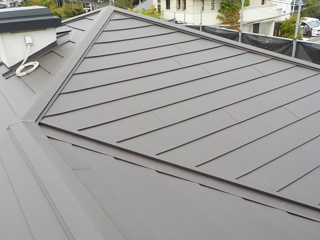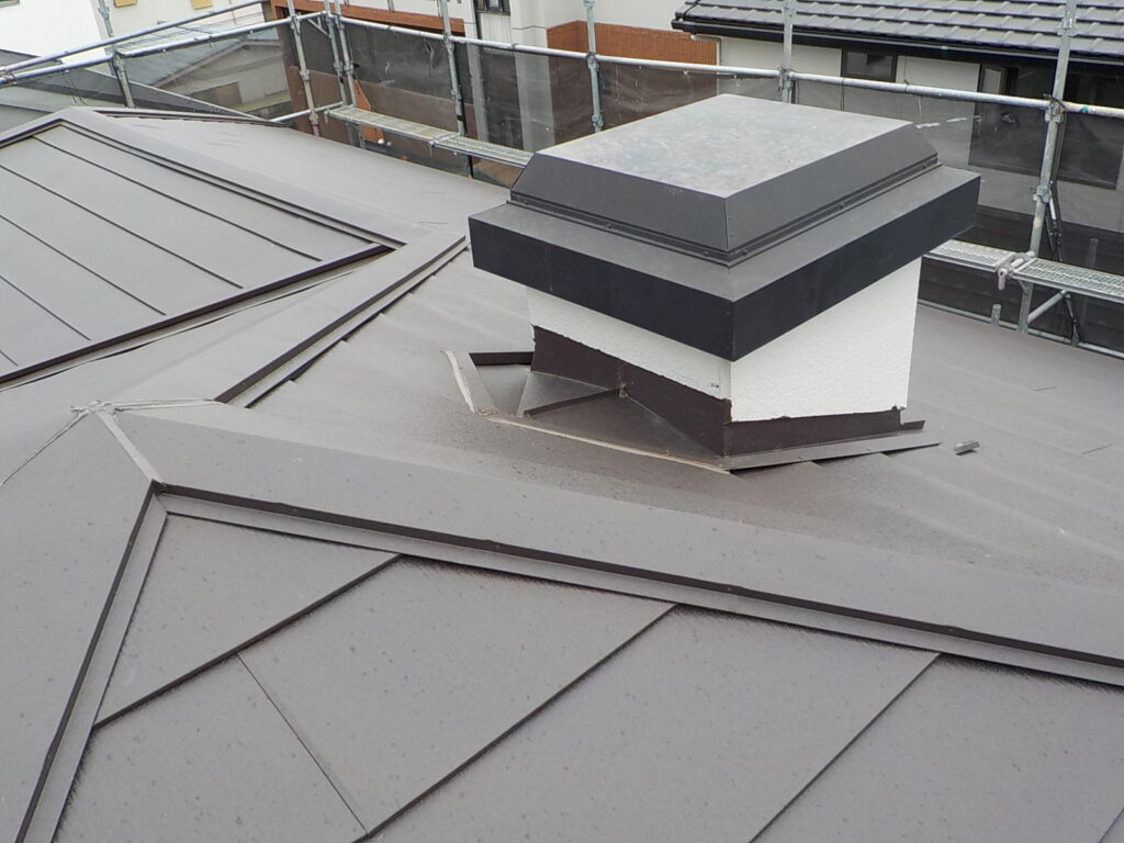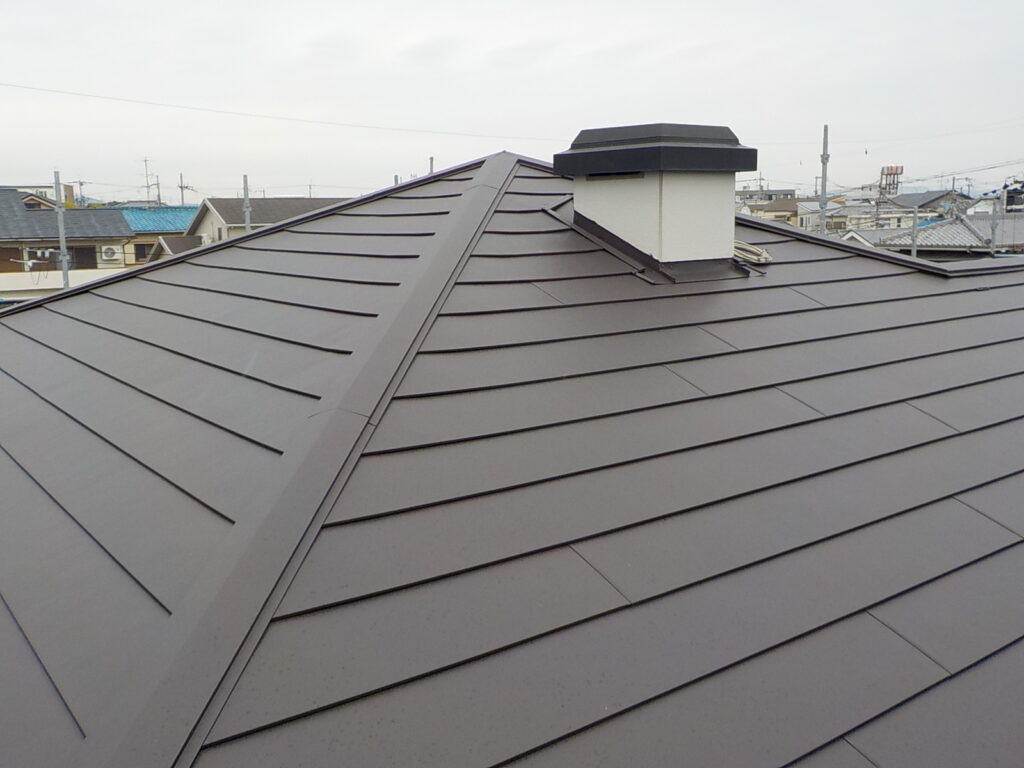 既存化粧スレート材にガルバリウム鋼板(スーパーガルテクト)でカバーさせていただきました。